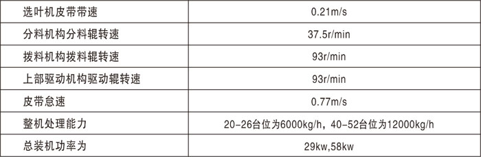 选叶机介绍 ◆选叶机由分料机构、连接段、拨料机构、布料机构、选叶皮带等组成。 ◆选叶皮带沿分料机构对称分布,来料经过分料机构被均分为二,由连接段皮带输送至各拨料机构适当地调节拨料机构,可使来料被均匀地输送到各选叶皮带机。