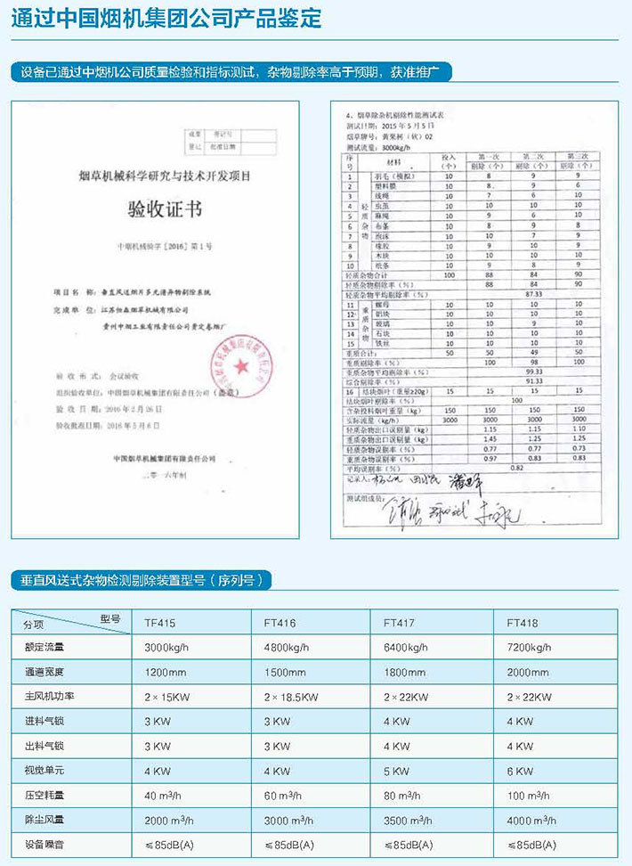 > 垂直风送式杂物检测剔除装置